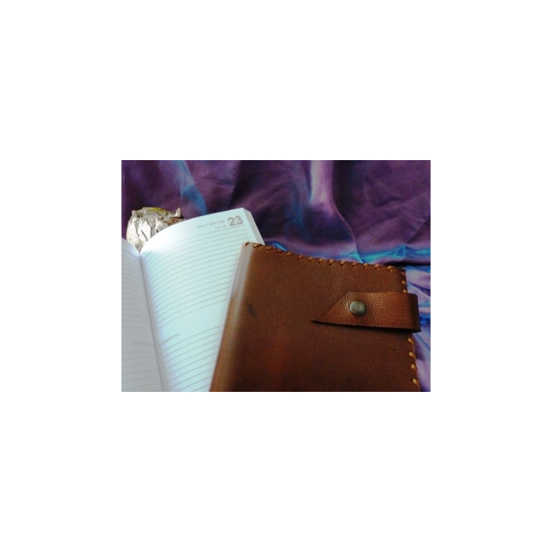 Cosida con hilo encerado o tireta de cuero, esta agenda incluye una perpetua y te ofrece la posibilidad de personalizarla con diferentes diseños, colores y adornos.