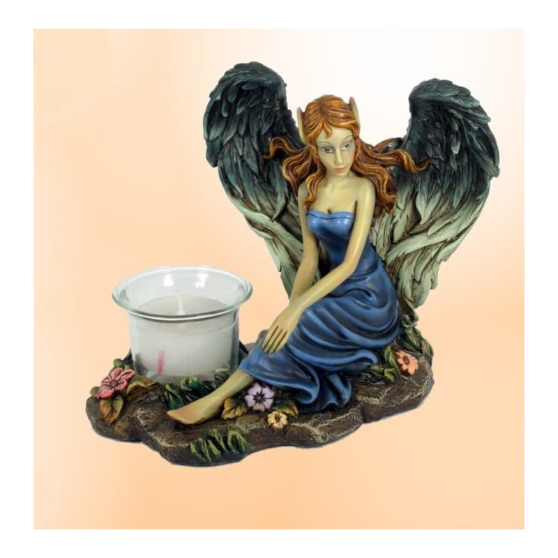 Este encantador portavelas con un ángel, hecho en resina, es más que un simple objeto decorativo; es una pieza que iluminará tu espacio con un toque celestial.