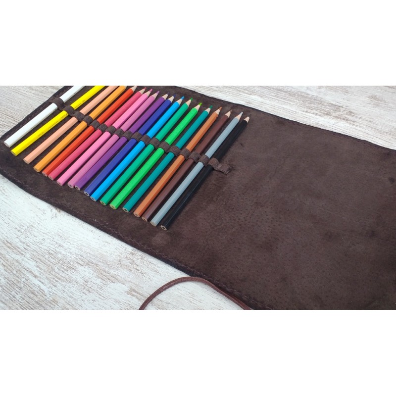 Guarda tus herramientas de dibujo con estilo en nuestro estuche enrollable de cuero.