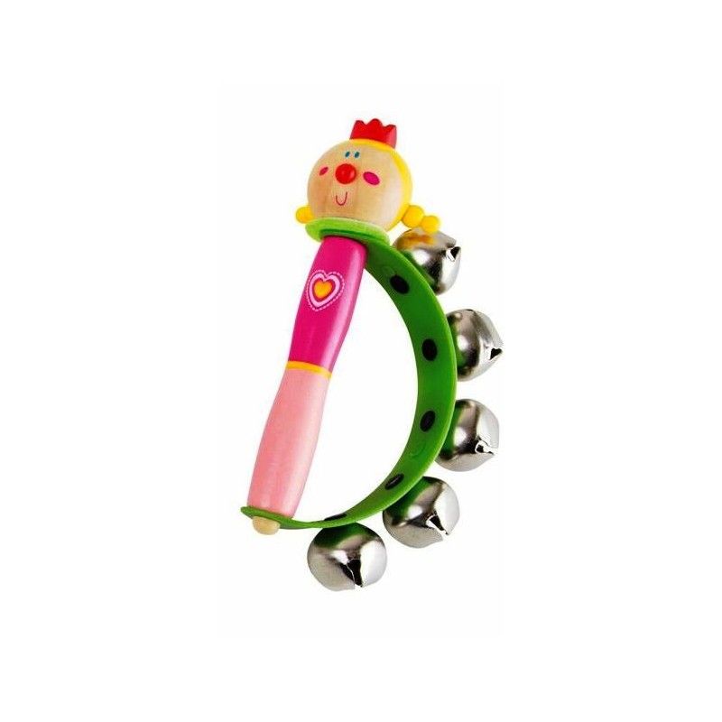 - Diseño: Cada cascabel cuenta con un mango de madera decorado con un personaje pintado a mano, lo que los hace atractivos y fáciles de agarrar para las manos pequeñas.