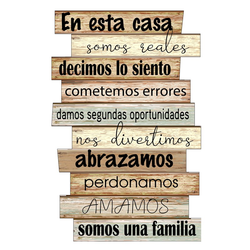 Estos adornos de pared en madera están pensados para llenar tu hogar de significado y emoción. Cada pieza transmite valores como el amor, el perdón, la unión y la alegría de compartir, convirtiéndose en un elemento decorativo con alma.