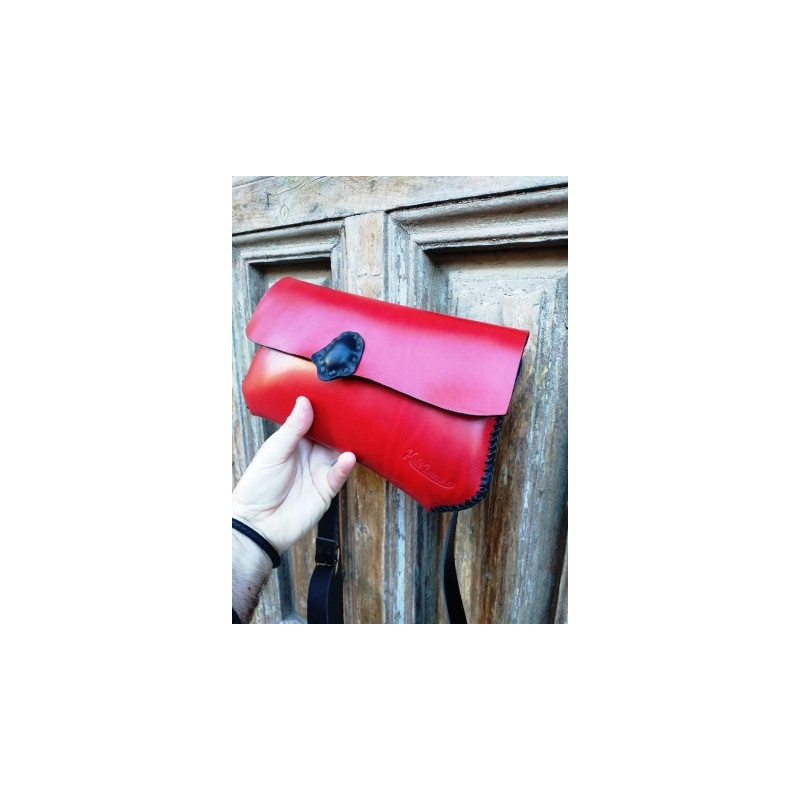 Bolso de cuero, realizado en piel de ternera de 1ª calidad, con cierre mediante imán. Correa de cuero ajustable.