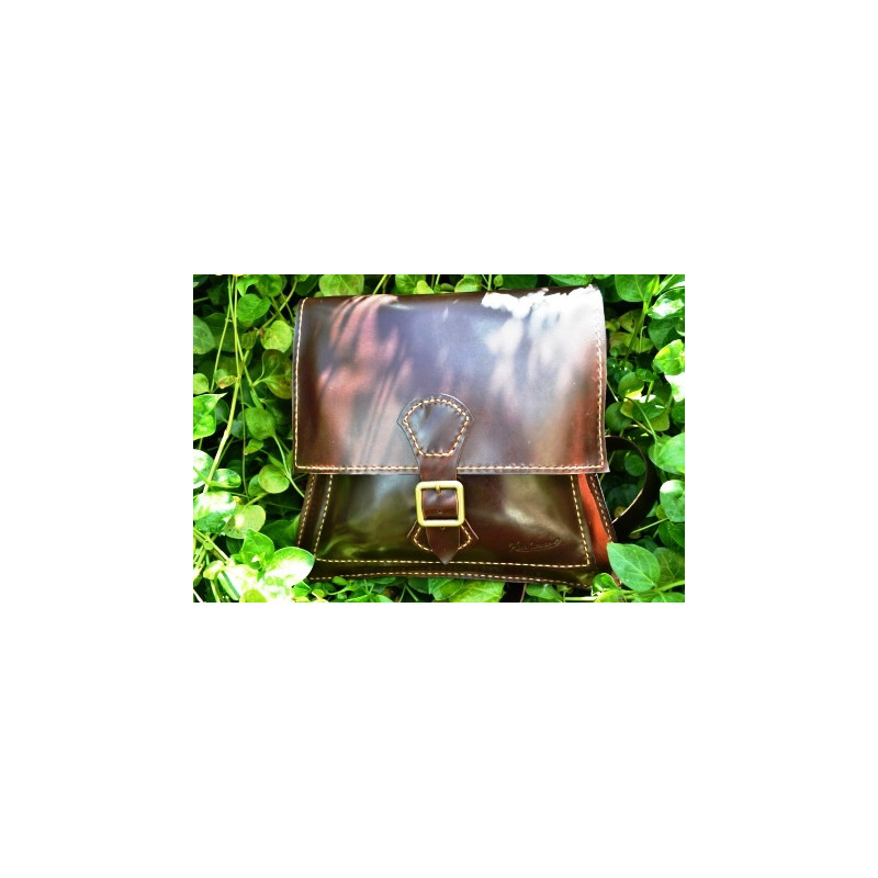 Bolso de cuero bandolera, realizado en piel de ternera de primera calidad, con cierre mediante hebilla.