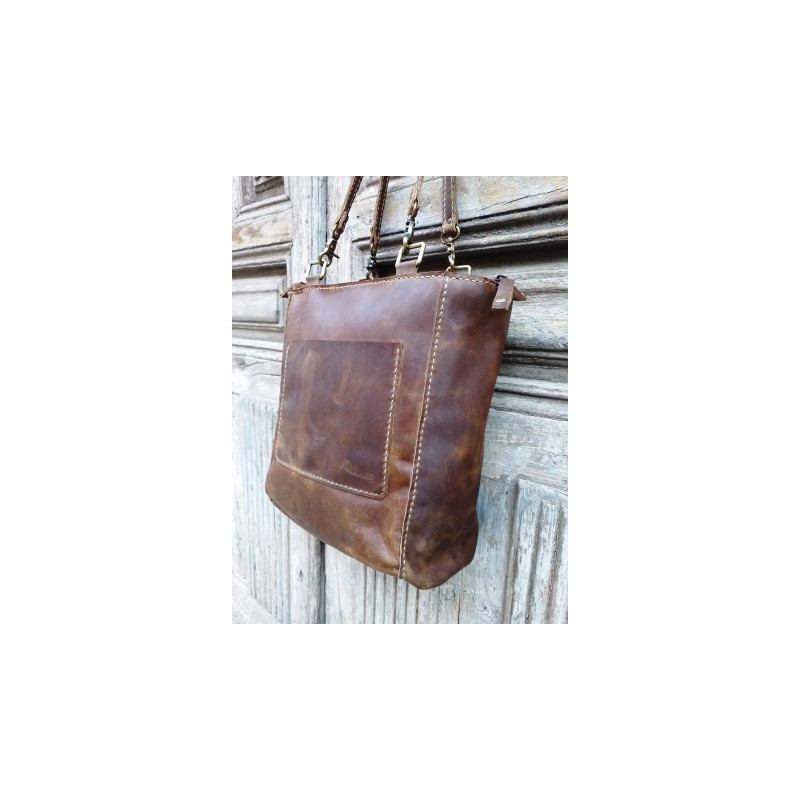 Bolso bandolera artesanal hecho a mano con piel de vacuno de alta calidad.