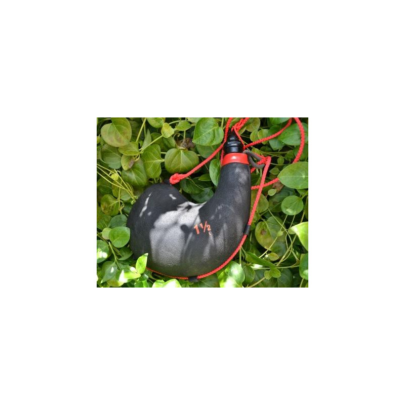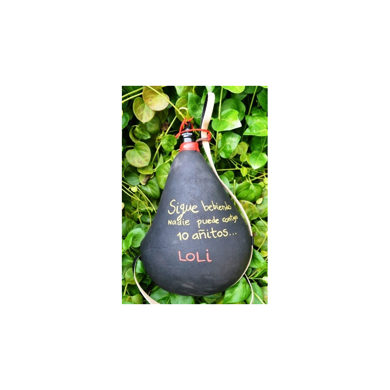 La bota de vino se envía despegada comprobada, curada y envinada para ser usada de inmediato. Bota "ombliguera", que pueden llevar algún parche, y no lleva logotipo de JB.