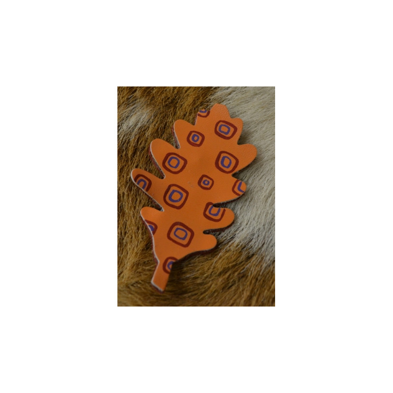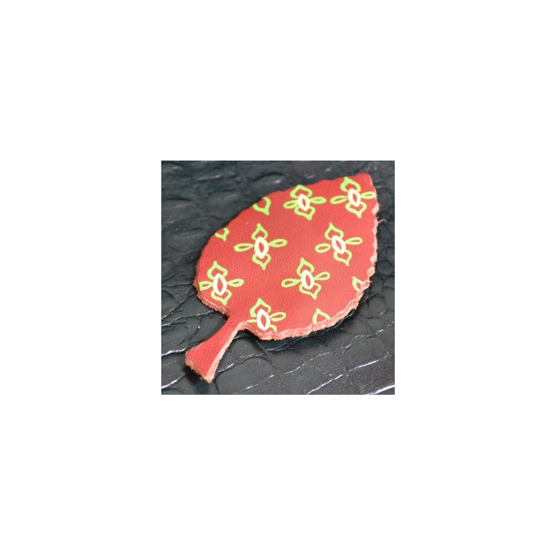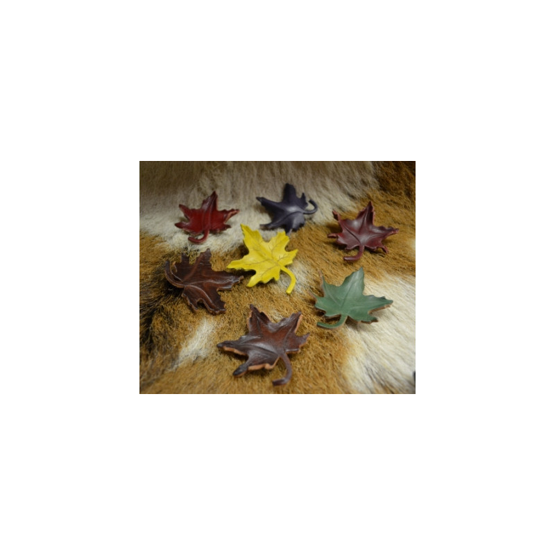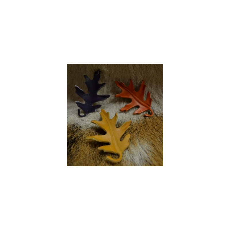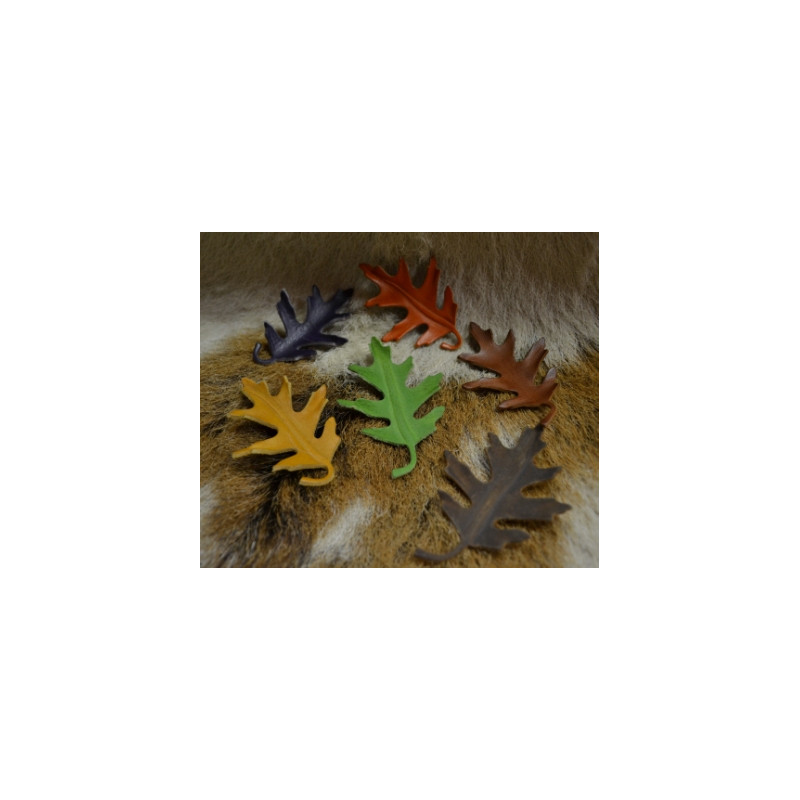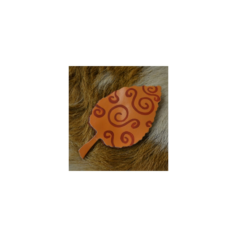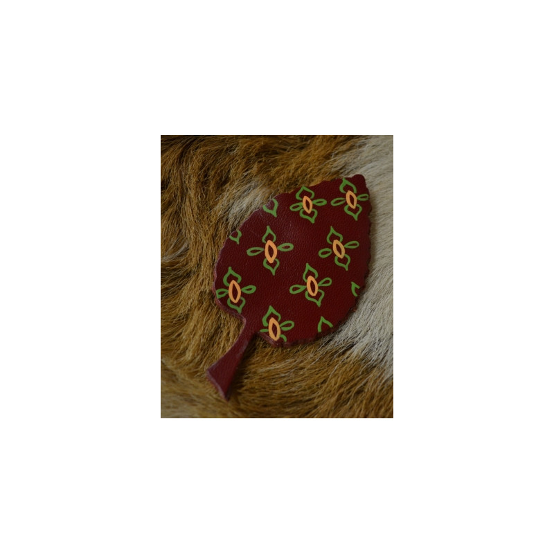 Broche artesanal de cuero con forma de hoja. Varios modelos y colores.