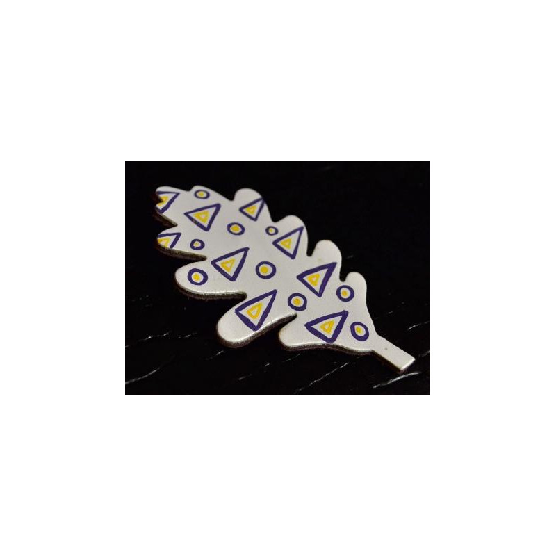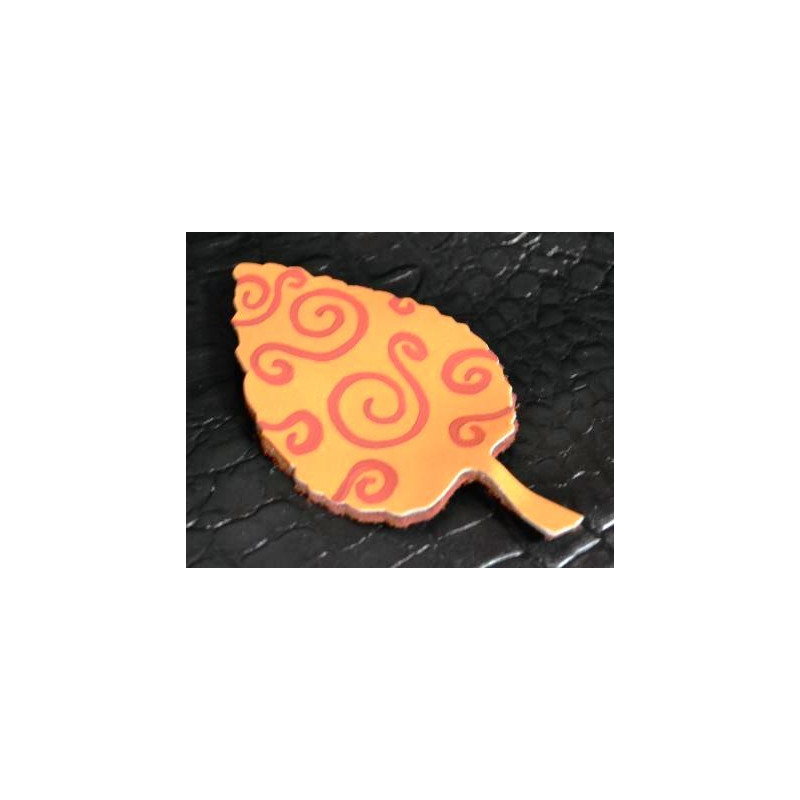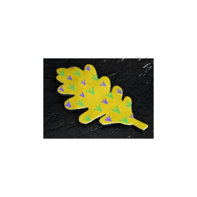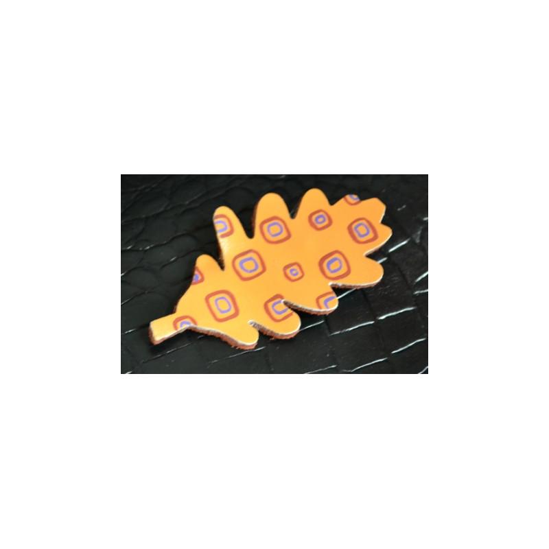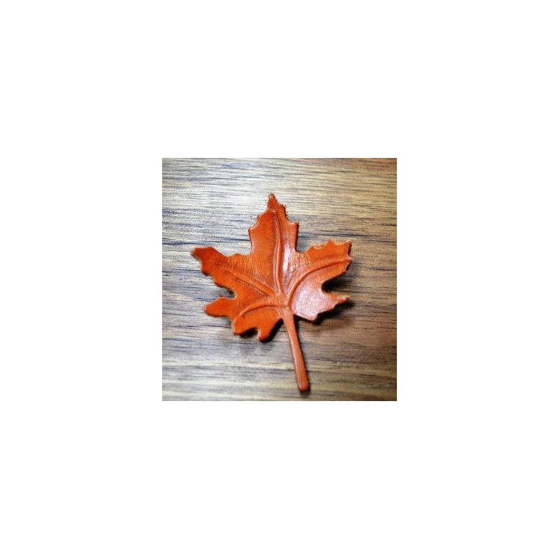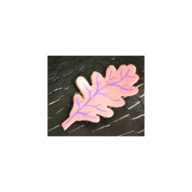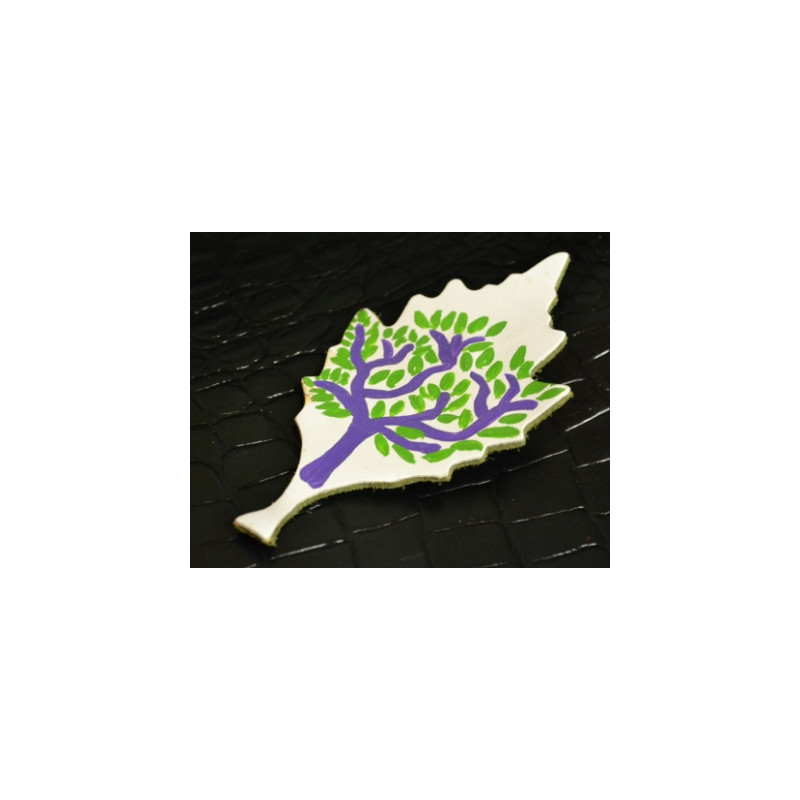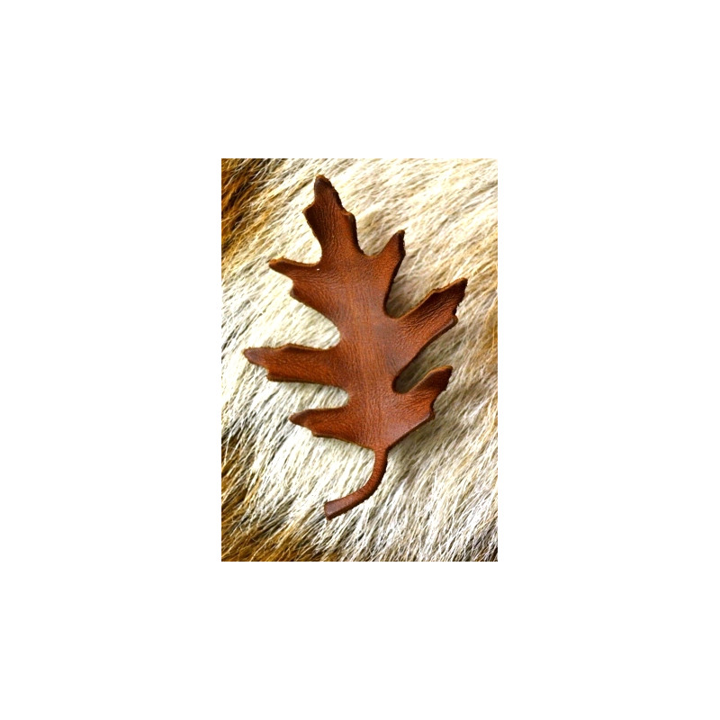 Broche artesanal de cuero con forma de hoja. Varios modelos y colores.