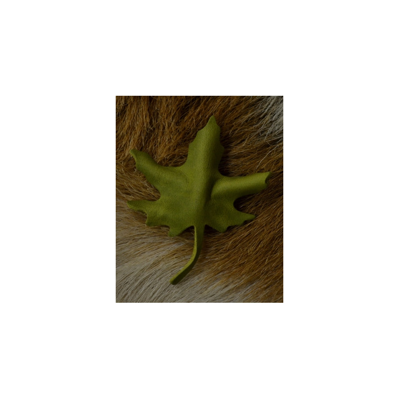 Broche con forma de hoja, hecho a mano en cuero de primera calidad, trabajado cuidadosamente para crear un complemento elegante, ligero y muy resistente. Cada pieza se realiza de manera artesanal, por lo que cada broche es único y presenta las texturas y matices propios de la piel natural.