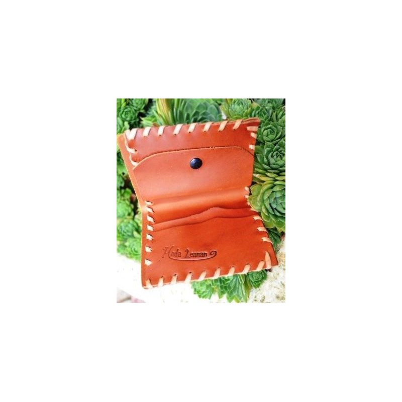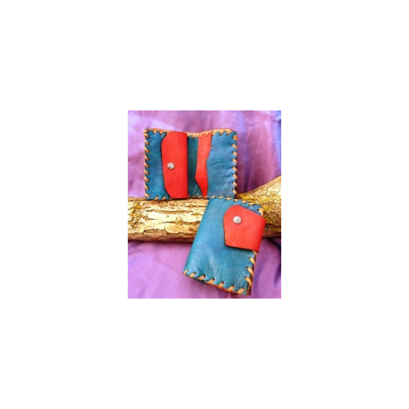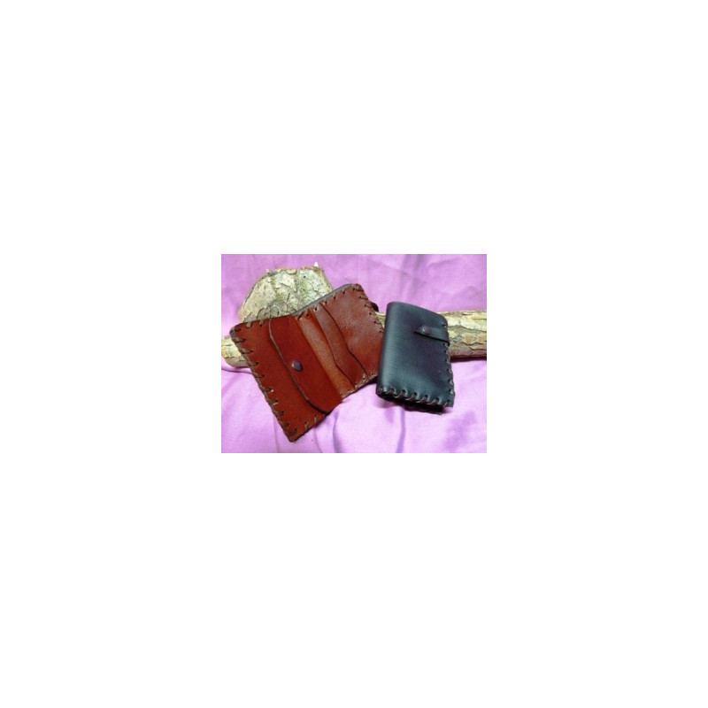 Hecha a mano y cosida con tireta de cuero, con billetero, monedero y tarjetero. También la podemos hacer sin monedero. (sustituyéndolo por tarjetero). Se puede hacer en varios colores: marrón avellana, marrón chocolate, negro, y combinada. Dimensiones: 10.5 x 7 cm. (cerrada) / 15 x 7 cm. (abierta)