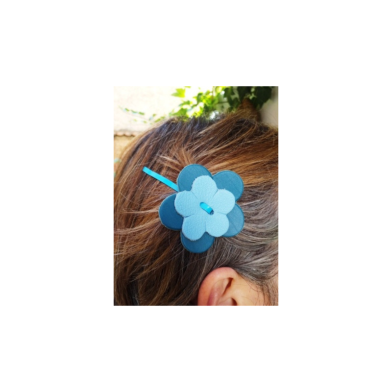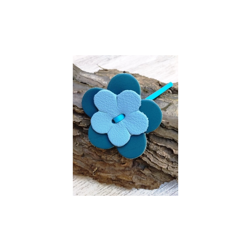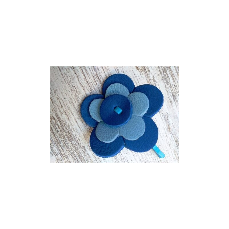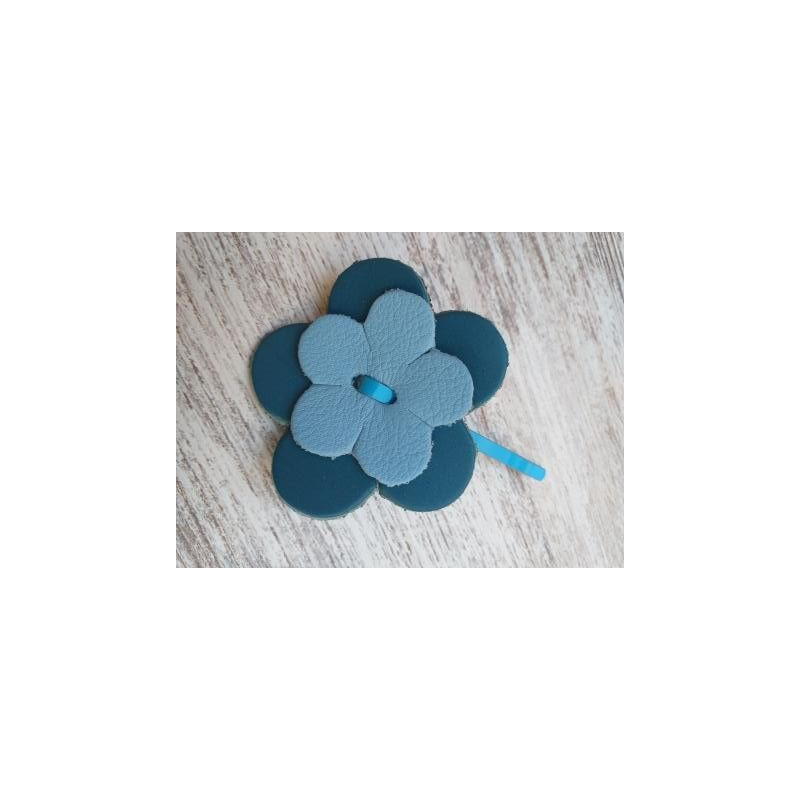 Horquilla de cuero con forma de flor. Hecha a mano con piel de primera calidad. Varios modelos y colores. Dimensiones: 5 x 5 cm. (flor)