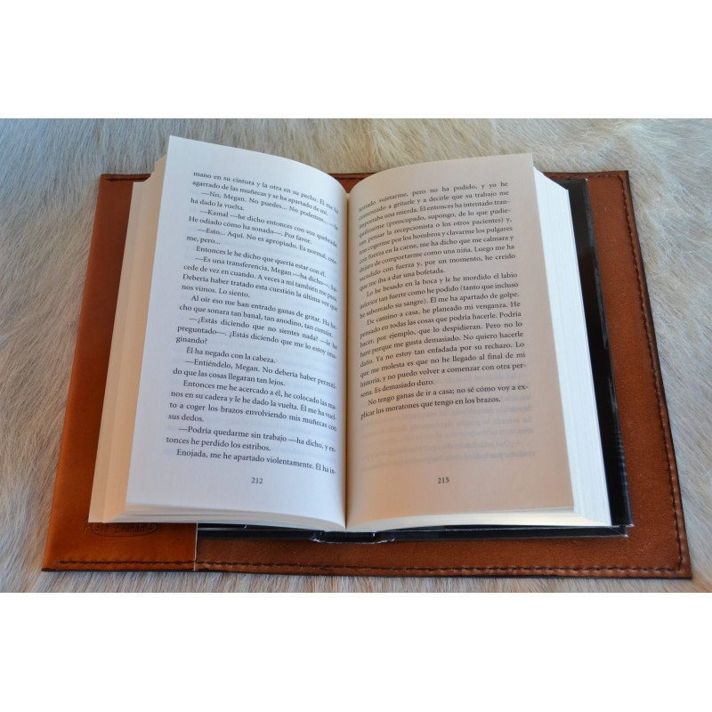 Funda de cuero hecha completamente a mano con piel de primera calidad, decorada con un exclusivo dibujo pirograbado que la hace única. Cada pieza está cosida a mano con hilo encerado, aunque también puedes optar por tireta de cuero para un acabado aún más artesanal.
