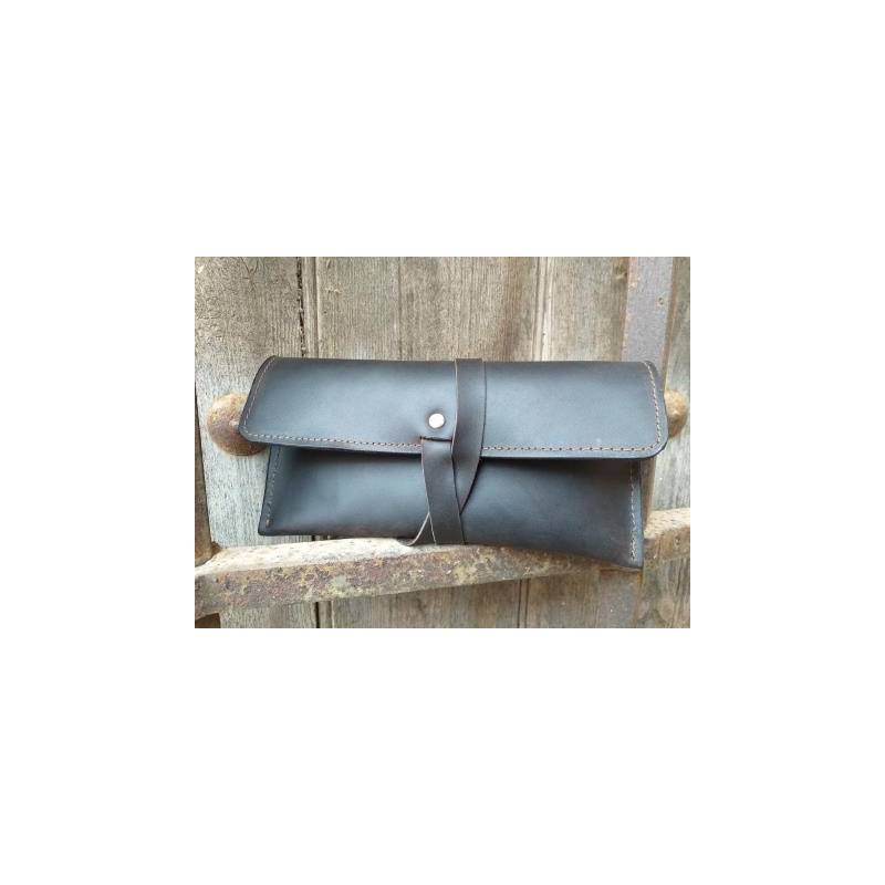 Protege tus gafas con estilo y artesanía con esta funda de gafas de cuero artesanal, elaborada a mano en piel de vacuno de primera calidad. Su cierre mediante tira de cuero asegura tus gafas y evita arañazos, mientras que el interior forrado con piel de cerdo ofrece una protección extra y un tacto suave.