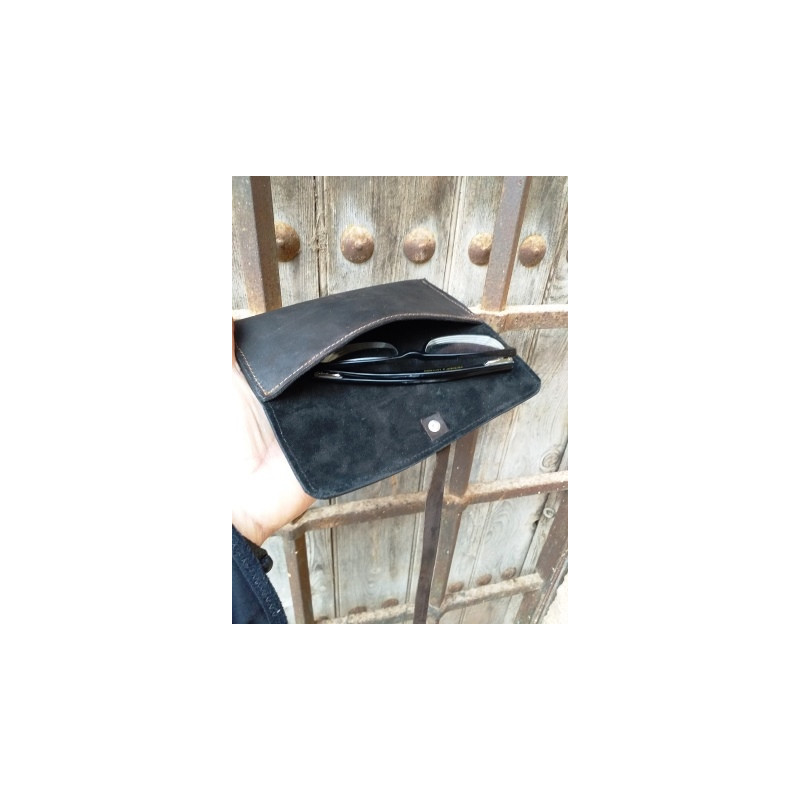 Funda de gafas en cuero vacuno.