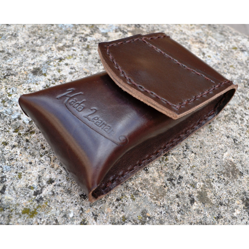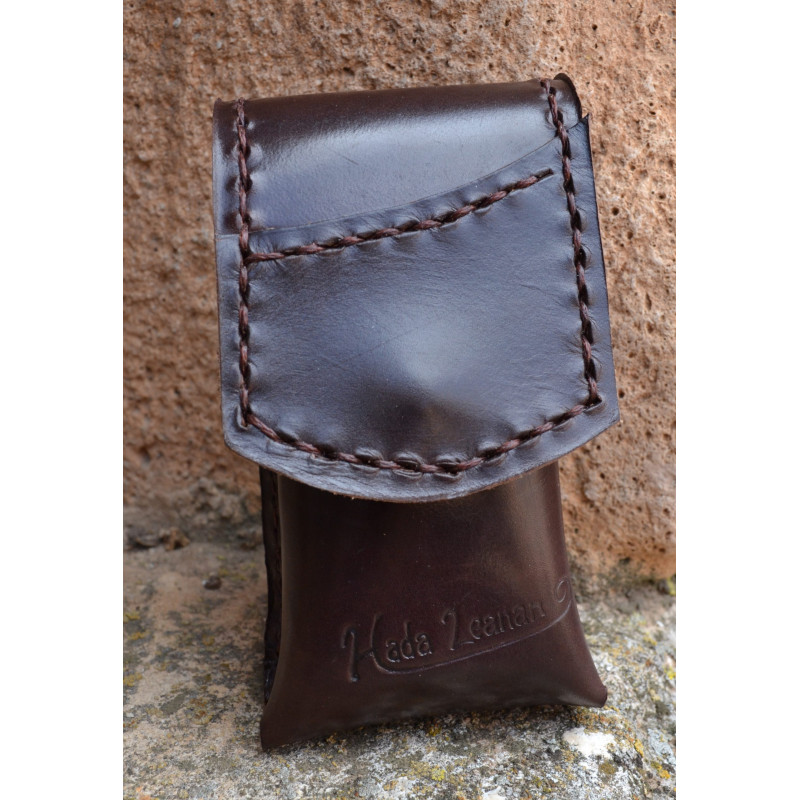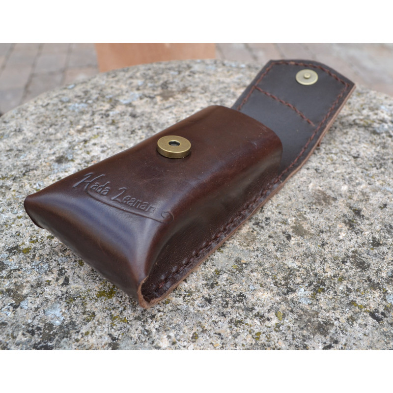 Funda de gafas en cuero vacuno de primera calidad, hecha a mano y cosida con hilo encerado.