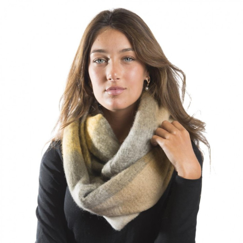 Suave rulo gordo de dos vueltas en cuadros. Varios colores: multi verdes y mostaza / caqui. Peso: 200 gr. Medidas: 40 x 80 cm Composición: 100% poliéster.