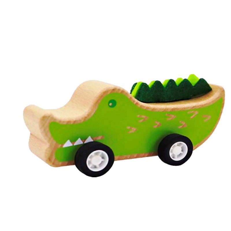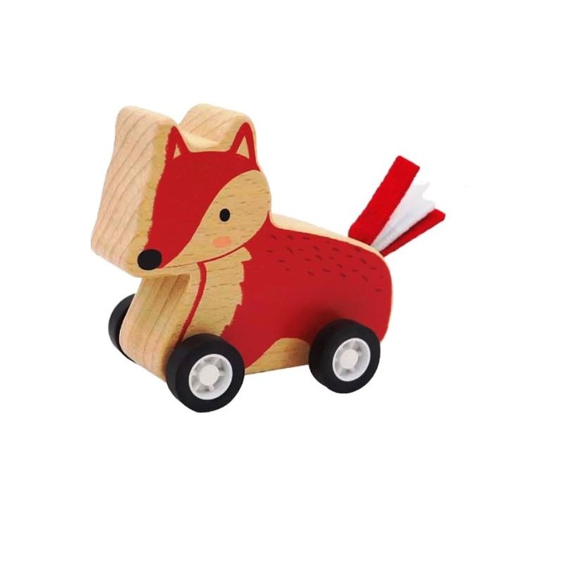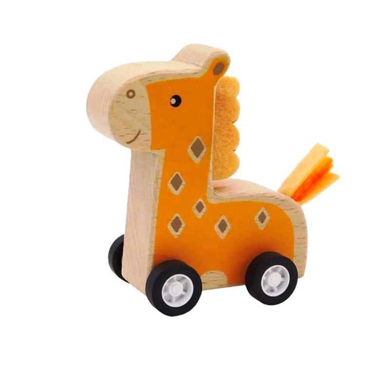 Cocodrilo, elefante, jirafa y zorro de madera con ruedas, 10 cm, seguros, coloridos y perfectos para niños a partir de 12 meses.