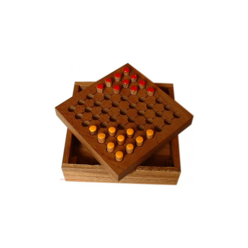 El objetivo es llegar al lado opuesto del tablero antes que tu oponente, moviendo todas tus fichas con astucia.