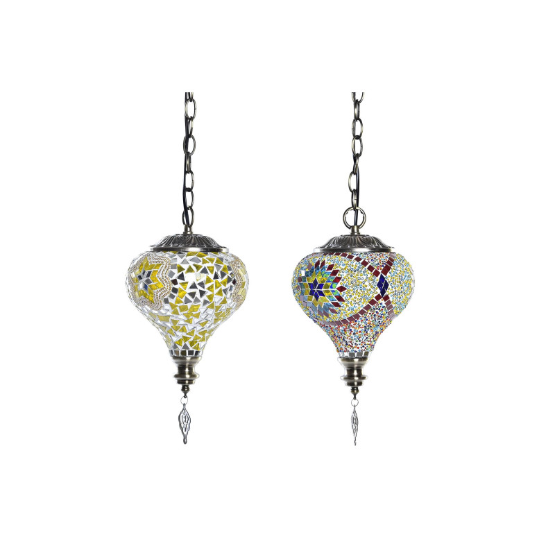Lámpara de techo estilo árabe, decorado con pequeñas y coloridos cristales que armonizan maravillosamente con el metal decorativo.