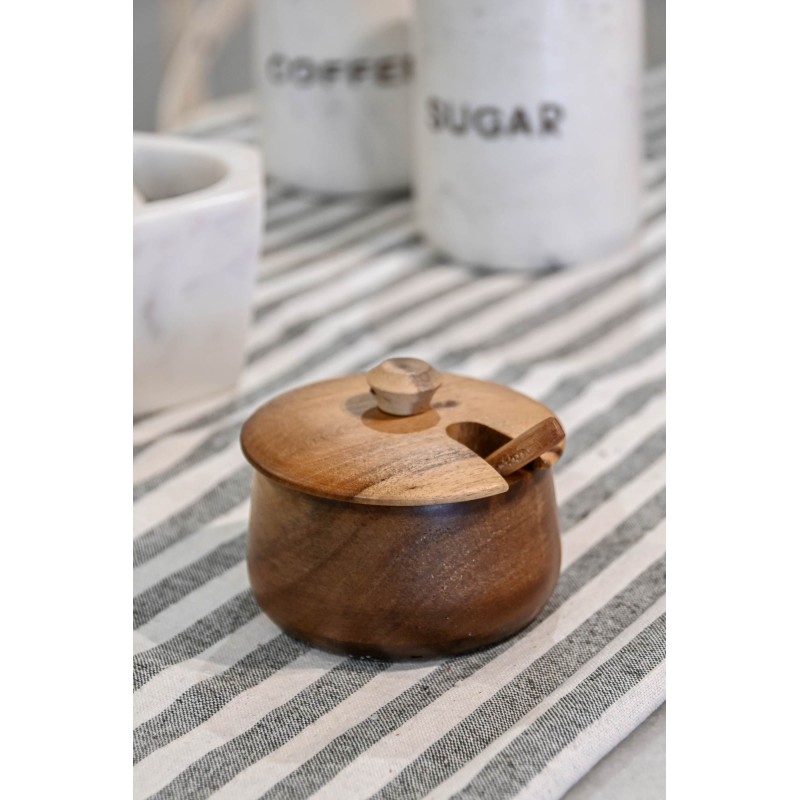 Este elegante azucarero está confeccionado en madera de acacia, una madera resistente y de hermoso acabado natural que aporta calidez y estilo a cualquier espacio.
