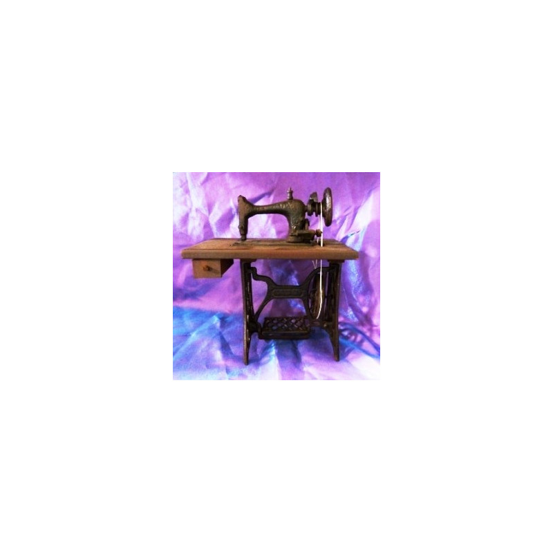 Maquina de coser en hierro fundido. Dimensiones: 14 x 6 cm.
