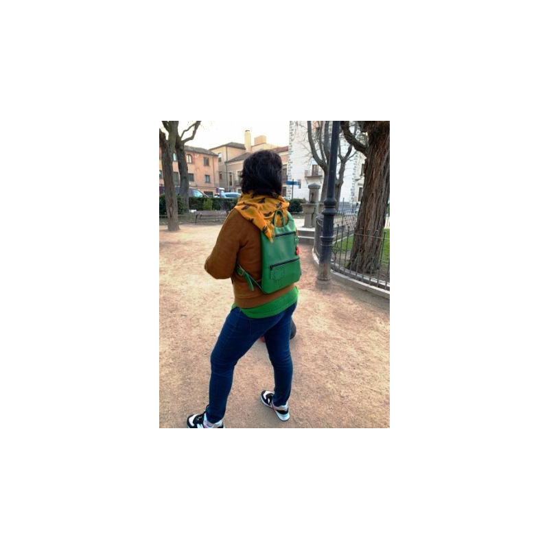 Hecha a mano en piel vacuno de primera calidad y cosida a mano con hilo encerado. Bolsillos delanteros con cierre mediante cremallera y bolsillo interior. Muy cómoda y practica para el día a día. Puedes elegir el color que prefieras: negra, marrón, verde,... Dimensiones: 45 x 32 cms. ¿Lo necesitas en otro color o con más bolsillos? Te hacemos la mochila a la medida de tus necesidades. Todos nuestros productos están hechos a mano con materiales de primera calidad.