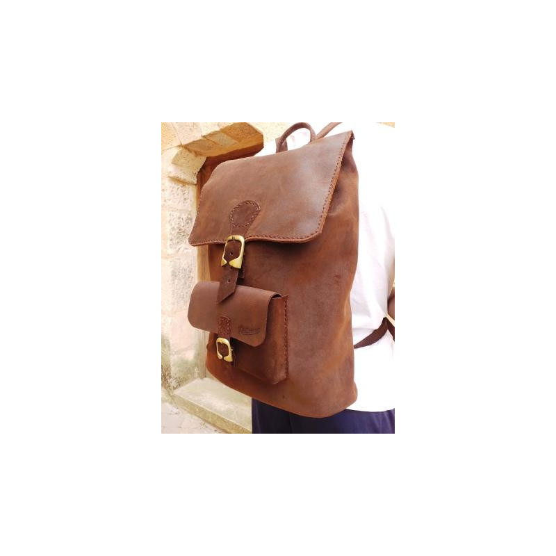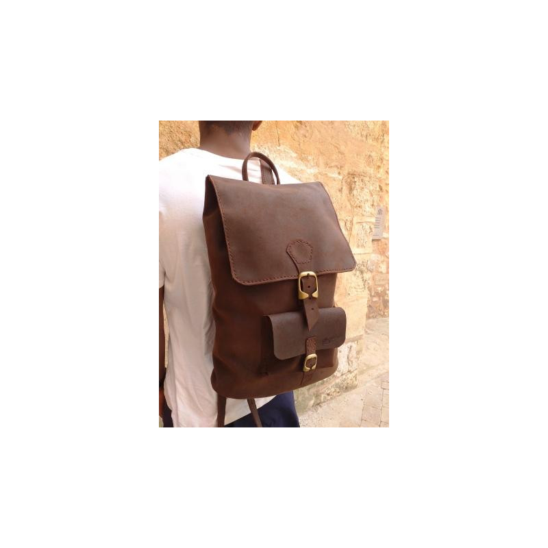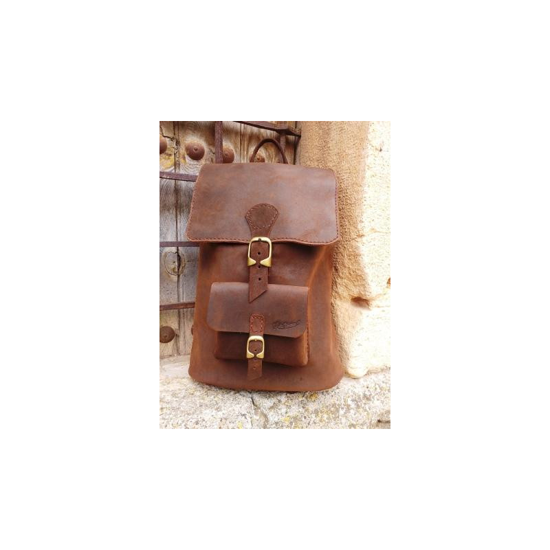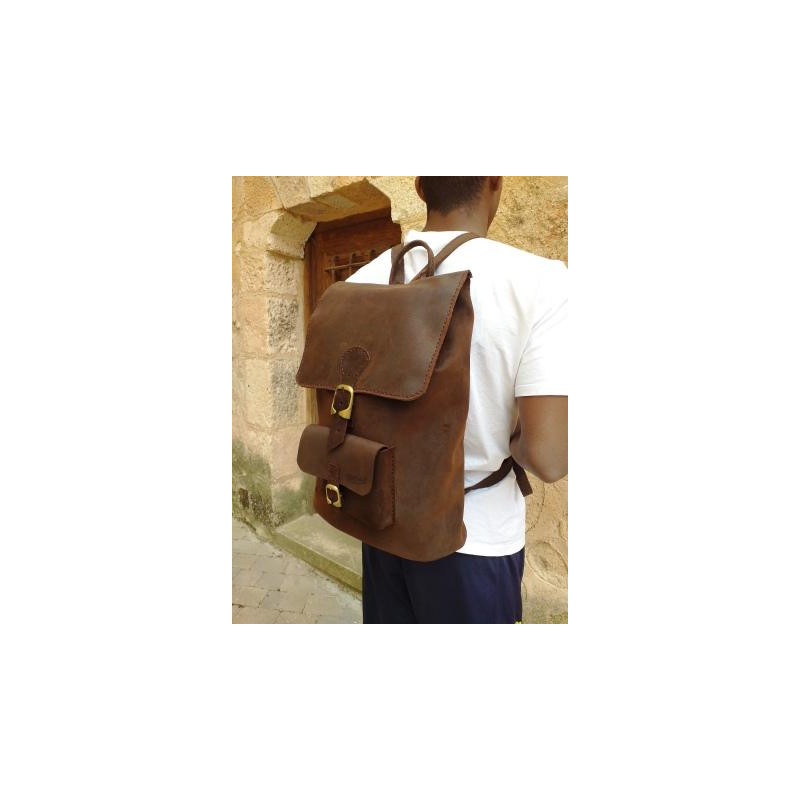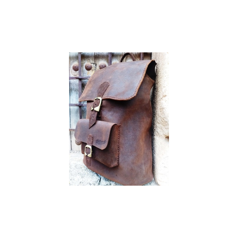 Mochila de cuero hecha a mano, elaborada con piel vacuno de alta calidad.