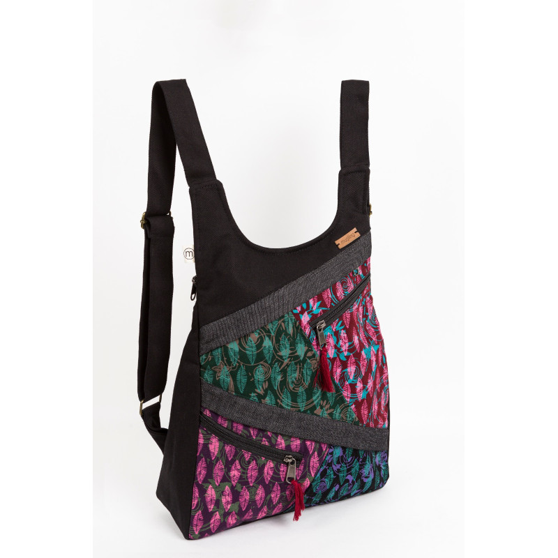 La parte alta es tipo "camiseta". Mezcla telas lisas con telas estampadas. Asas regulables.
