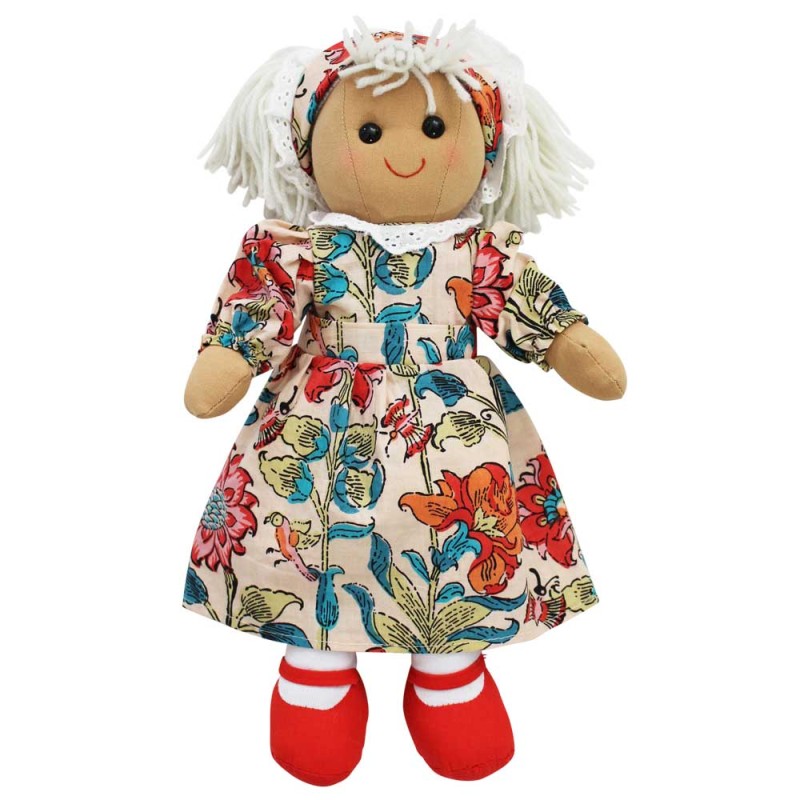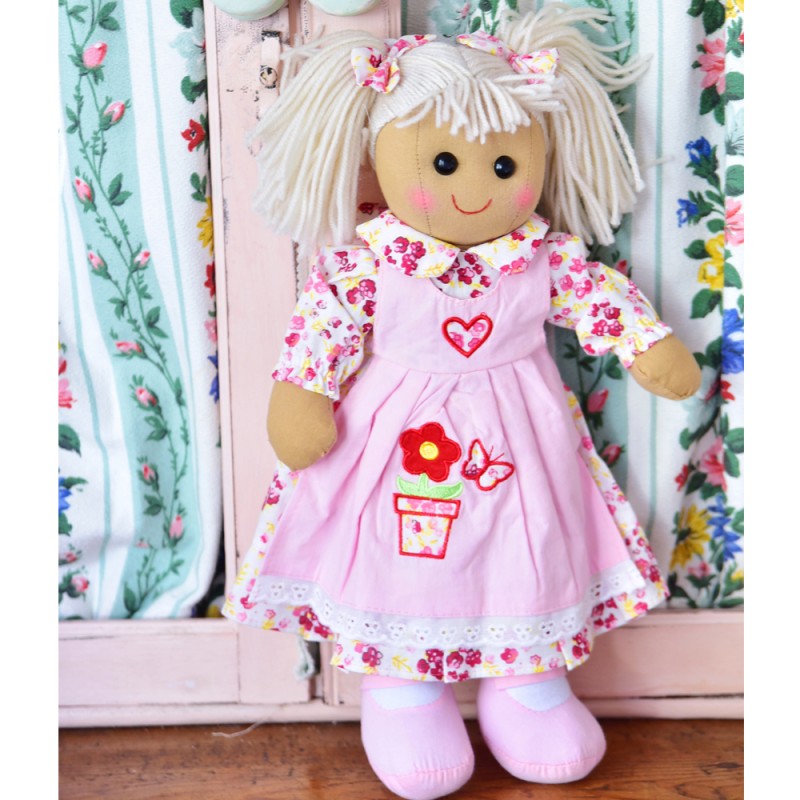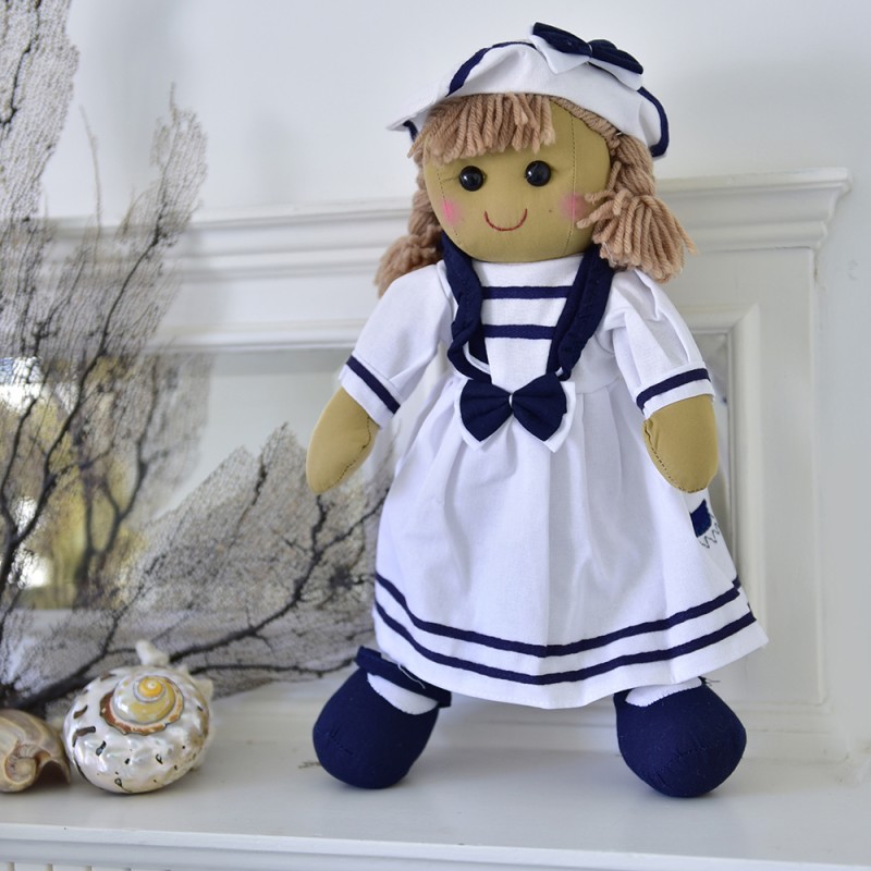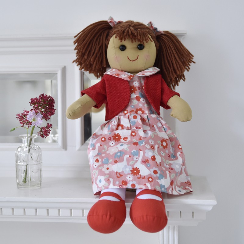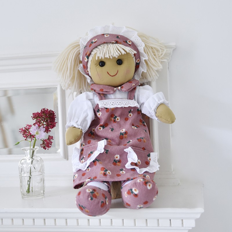 Esta muñeca de trapo de estilo clásico está elaborada con materiales de primera calidad y cuidada hasta el último detalle. Su exterior es de algodón 100 % y su interior de fibra hueca, lo que la hace especialmente suave, ligera y agradable al tacto. Su acabado artesanal convierte cada pieza en única.