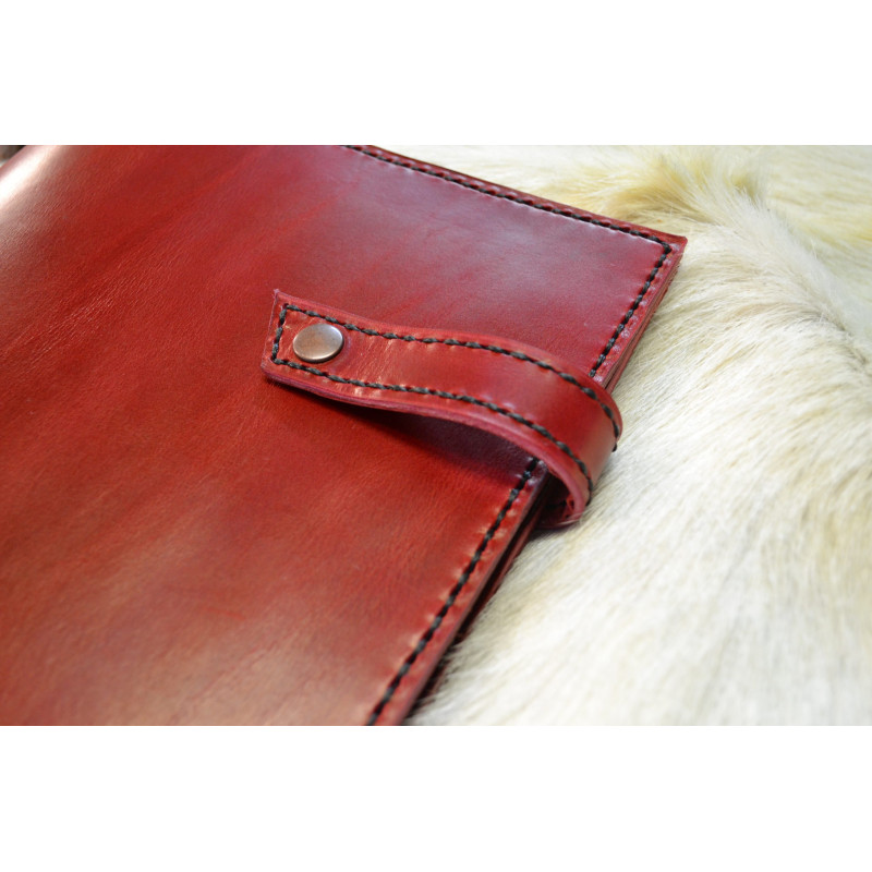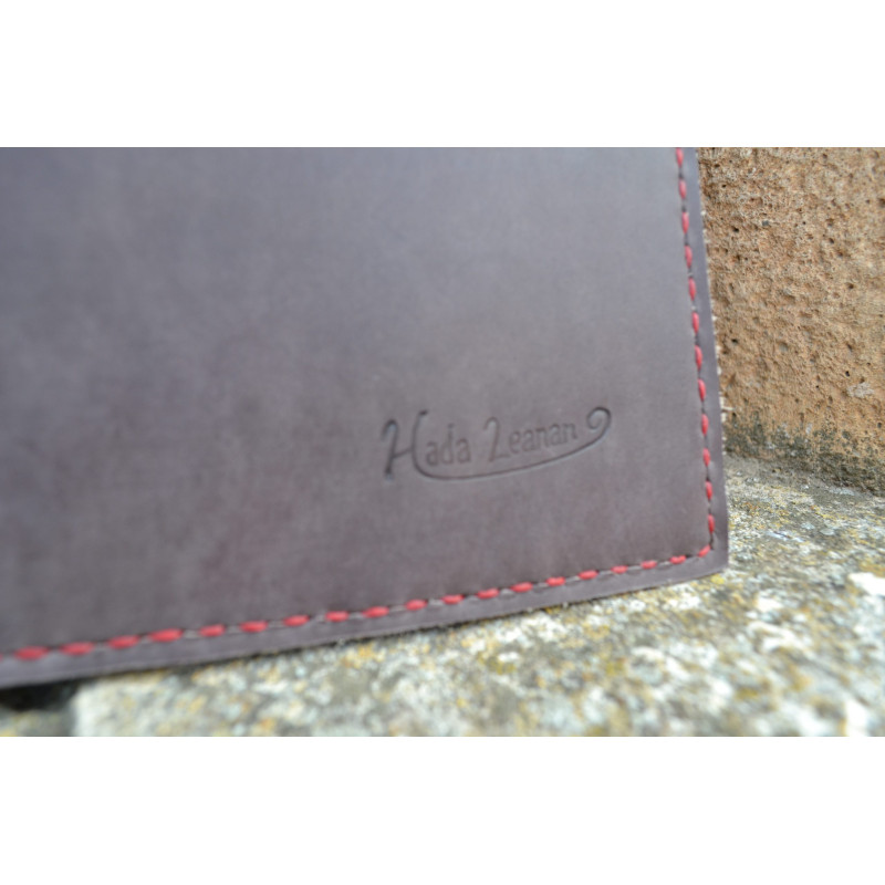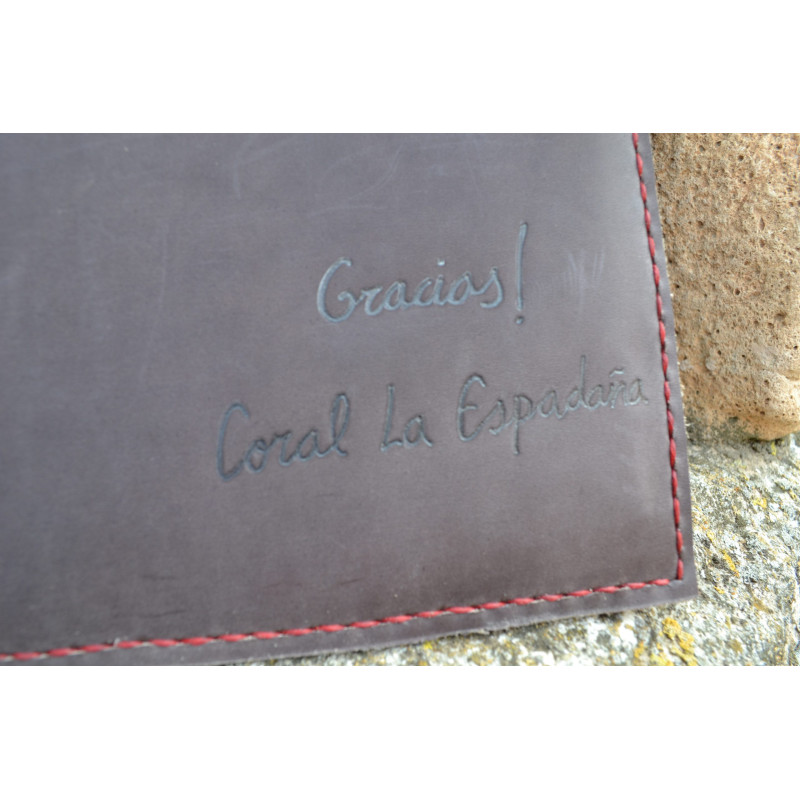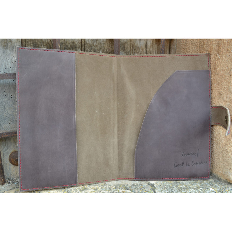 Este portafolios está elaborado en piel vacuno de primera calidad y cosido a mano con hilo encerado, garantizando resistencia y un acabado impecable. Su interior en piel de serraje incluye dos bolsillos ideales para llevar documentos, libretas o tablets bien protegidos y organizados.