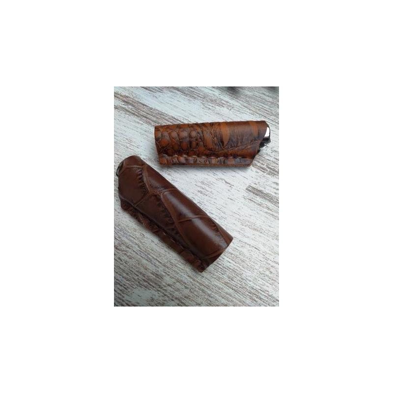 Funda de cuero artesanal para mechero Clipper, hecha a mano con piel de primera calidad.