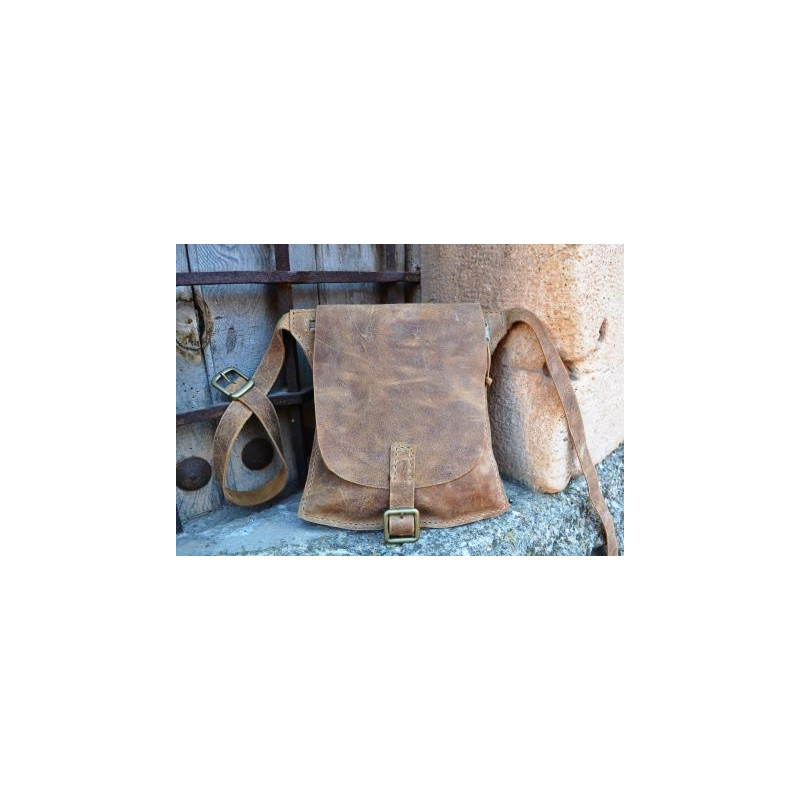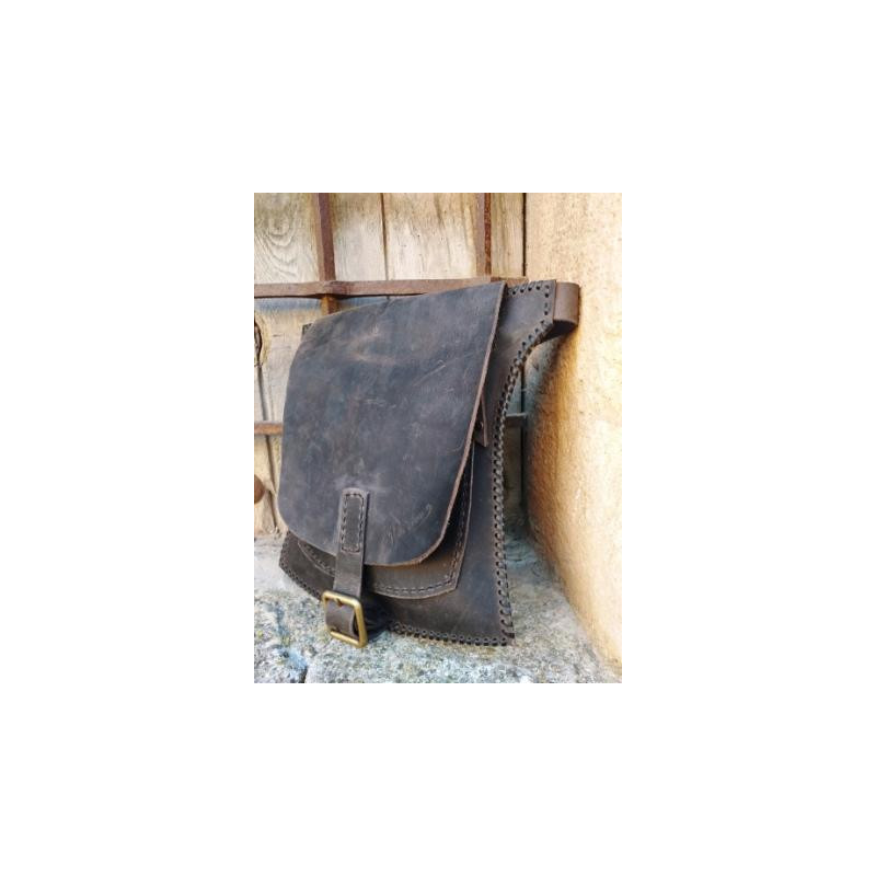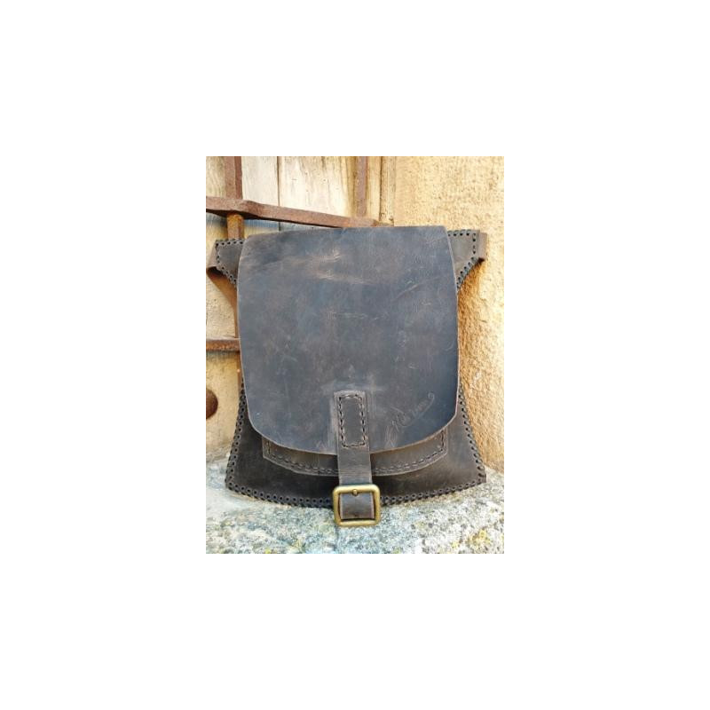 Riñonera de cuero hecha a mano en piel vacuno de primera calidad, cosida con hilo encerado. Dispone de dos compartimentos que cierran mediante cremallera. Solapa exterior cerrada mediante hebilla. Dimensiones: 26 x 20 cms.