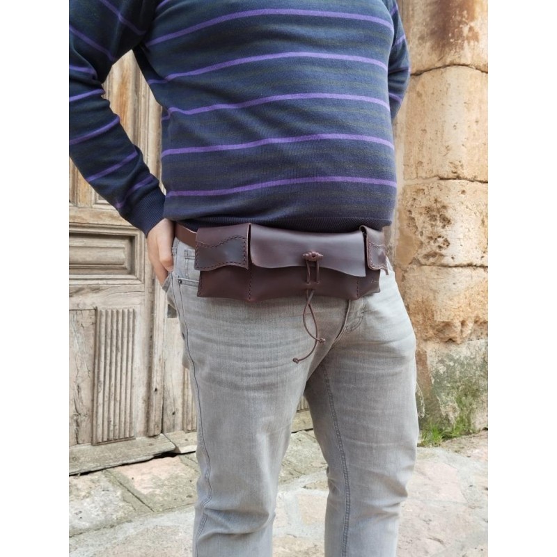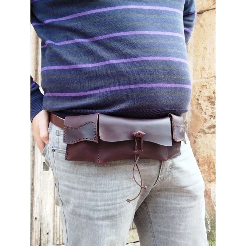Riñonera de cuero artesanal, hecha a mano en piel vacuno de primera calidad.