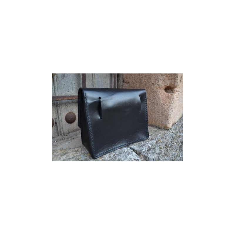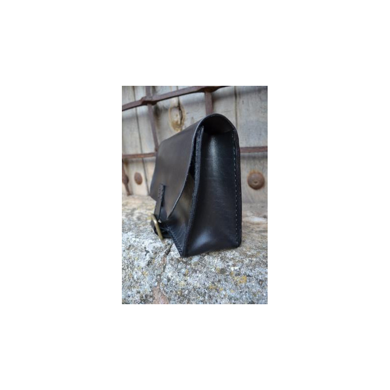 Se ajusta cómodamente al cinturón mediante trabilla de cuero y cierre con hebilla, combinando funcionalidad y estilo.