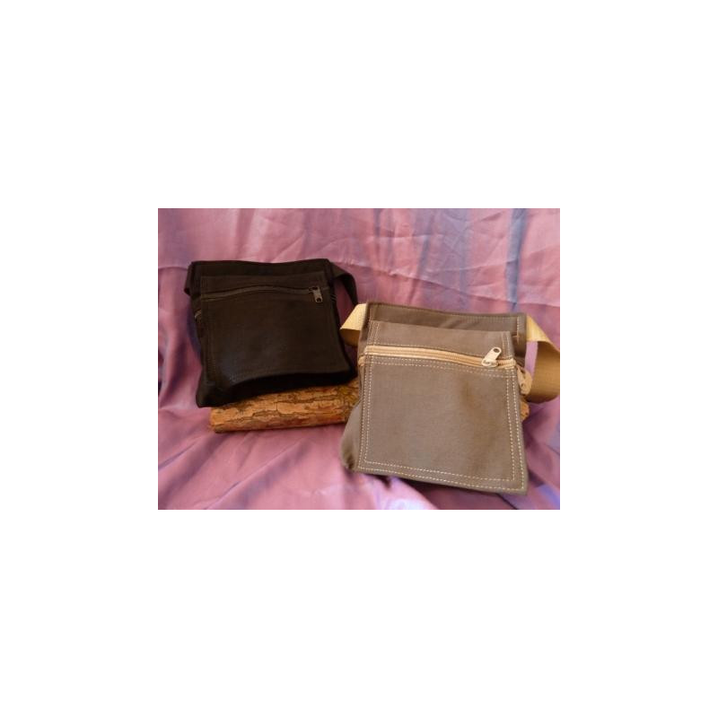Cierre de cremallera en cada bolsillo. Asa o correa ajustable y con cierre de presión. Disponibilidad en varios colores.