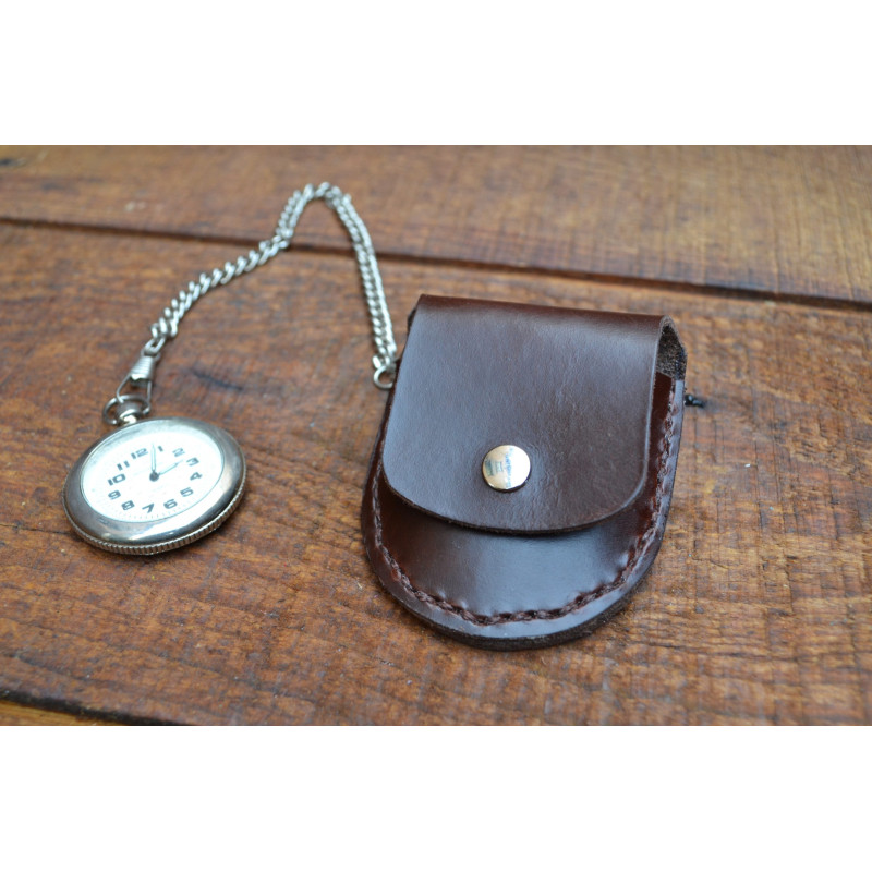 Funda de reloj, hecho a mano en piel vacuno de primera calidad. Cosido completamente a mano con hilo encerado. Dispone de trabilla para poder colgarse en el cinturón. Se puede hacer en el color que quieras: marrón, negro, rojo, verde, morado,.... Dimensiones: 8 x 7 cms. No incluye reloj. Todos nuestros productos están hechos a mano con materiales de primera calidad. 100 % hecho a mano en España, con 110 % de amor.