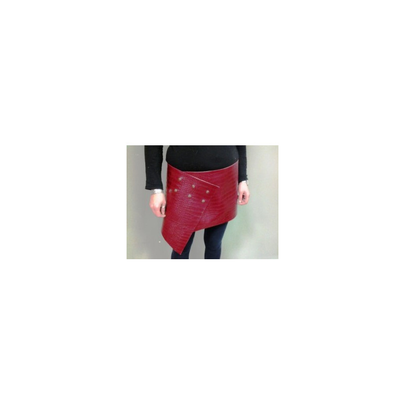 Falda de cuero, hecha a mano en vaqueta roja grabada. Se puede hacer en varios colores.