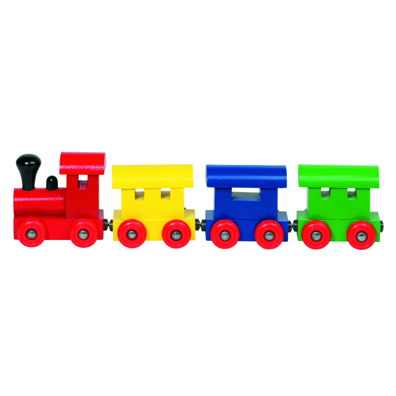 Tren de madera formado por tres vagones y la locomotora, diseñado para los más pequeños de la casa.